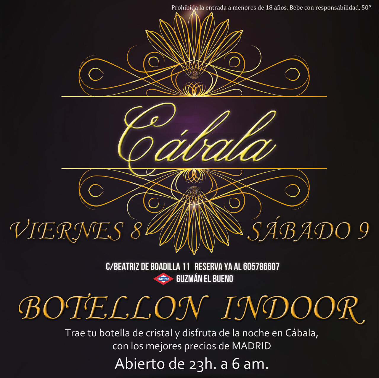 Nos encontramos en la calle Beatriz de Boadilla 11, muy cerca metro Guzmán el Bueno, y abrimos viernes y sábados de 20pm a 6 am. ¿a qué esperas para conocernos? Ven a disfrutar de tu botellón indoor en Cábala.